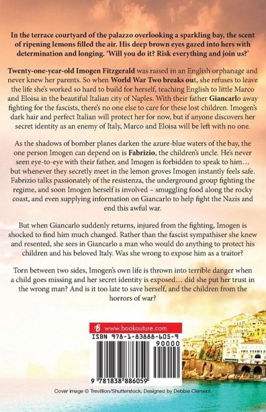 In the terrace courtyard of the palazzo overlooking a sparkling bay, the scent of ripening lemons filled the air. His deep brown eyes gazed into hers with determination and longing. ‘Will you do it? Risk everything and join us?’ Twenty-one-year-old Imogen Fitzgerald was raised in an English orphanage and never knew her parents. So when World War Two breaks out, she refuses to leave the life she’s worked so hard to build for herself, teaching English to little Marco and Eloisa in the beautiful Italian city of Naples. With their father Giancarlo away fighting for the fascists, there’s no one else to care for these lost children. Imogen’s dark hair and perfect Italian will protect her for now, but if anyone discovers her secret identity as an enemy of Italy, Marco and Eloisa will be left with no one. As the shadows of bomber planes darken the azure-blue waters of the bay, the one person Imogen can depend on is Fabrizio, the children’s uncle. He’s never seen eye-to-eye with their father, and Imogen is forbidden to speak to him… but whenever they secretly meet in the lemon groves Imogen instantly feels safe. Fabrizio talks passionately of the resistenza, the underground group fighting the regime, and soon Imogen herself is involved – smuggling food along the rocky coast, and even supplying information on Giancarlo to help fight the Nazis and end this awful war. But when Giancarlo suddenly returns, injured from the fighting, Imogen is shocked to find him much changed. Rather than the fascist sympathiser she knew and resented, she sees in Giancarlo a man who would do anything to protect his children and his beloved Italy. Was she wrong to expose him as a traitor? Torn between two sides, Imogen’s own life is thrown into terrible danger when a child goes missing and her secret identity is exposed… did she put her trust in the wrong man? And is it too late to save herself, and the children from the horrors of war? An absolutely stunning and evocative historical read about the bravery of ordinary people in dark times, that will sweep you away to the breath-taking coastline of Italy. Perfect for fans of The Nightingale, The Tuscan Child and All the Light We Cannot See. Read what everyone’s saying about Natalie Meg Evans: 'Wow, wow, wow is all I can say… tense and the surprises just kept on coming… it tore at my heart… The words "mind-blowing twist" come to mind.’ Shaz’s Book Blog, 5 stars ‘Such a good story with a wonderful plot… one of the best love stories I've read in a while… dramatic, passionate… suspenseful and cinematic… The emotion she conjures up is phenomenal.’ Jthbooks, 5 stars ‘A wonderful book, engaging and entertaining. I loved the plot, the characters and the style of writing. I will surely look for other books by this author. Highly recommended!’ Goodreads Reviewer, 5 stars ‘A beautifully written novel by an extremely talented writer. Excellent character depiction, plus an exciting storyline makes for a roaring success. Highly recommended.’ Goodreads Reviewer, 5 stars