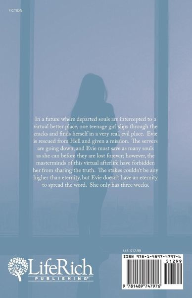 In a future where departed souls are intercepted to a virtual better place, one teenage girl slips through the cracks and finds herself in a very real, evil place. Evie is rescued from Hell and given a mission. The servers are going down, and Evie must save as many souls as she can before they are lost forever; however, the masterminds of this virtual afterlife have forbidden her from sharing the truth. The stakes couldn't be any higher than eternity, but Evie doesn't have an eternity to spread the word. She only has three weeks.