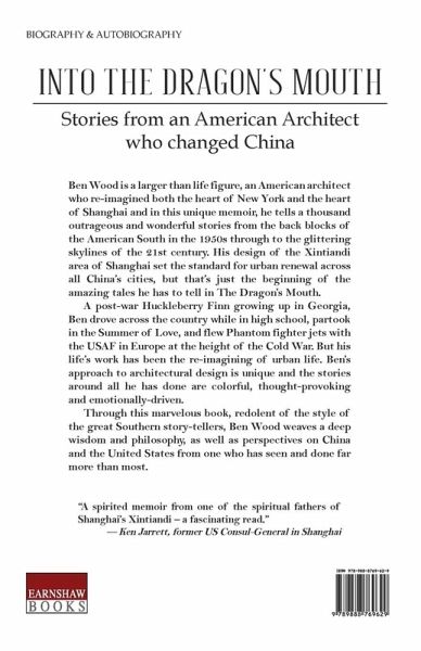 Ben Wood is a larger than life figure, an American architect who re-imagined both the heart of New York and the heart of Shanghai and in this unique memoir, he tells a thousand outrageous and wonderful stories from the back blocks of the American South in the 1950s through to the glittering skylines of the 21st century. His design of the Xintiandi area of Shanghai set the standard for urban renewal across all of China's cities, but that's just the beginning of the amazing tales he has to tell in Into The Dragon's Mouth. A post-war Huckleberry Finn growing up in Georgia, Ben drove across the country while in high school, partook in the Summer of Love, and flew Phantom fighter jets with the USAF in Europe at the height of the Cold War. But his life's work has been the re-imagining of urban life. Ben's approach to architectural design is unique and the stories around all he has done are colorful, thought-provoking and emotionally-driven. Through this marvelous book, redolent of the style of the great Southern story-tellers, Ben Wood weaves a deep wisdom and philosophy, as well as perspectives on China and the United States from one who has seen and done far more than most.