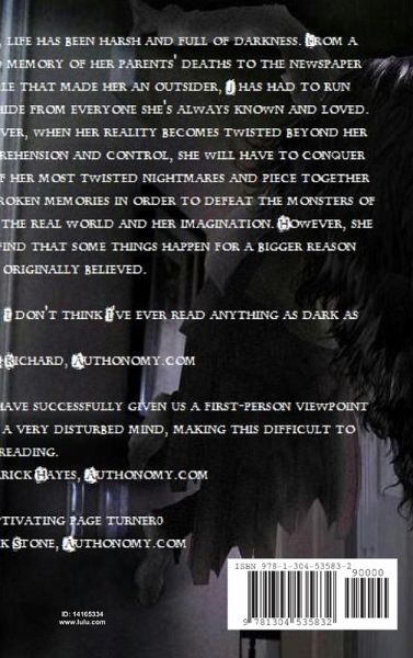 For J, life has been harsh and full of darkness. From a mixed memory of her parents' deaths to the newspaper article that made her an outsider, J has had to run and hide from everyone she's always known and loved. However, when her reality becomes twisted beyond her comprehension and control, she will have to conquer all of her most twisted nightmares and piece together her broken memories in order to defeat the monsters of both the real world and her imagination. However, she may find that some things happen for a bigger reason than originally believed.
