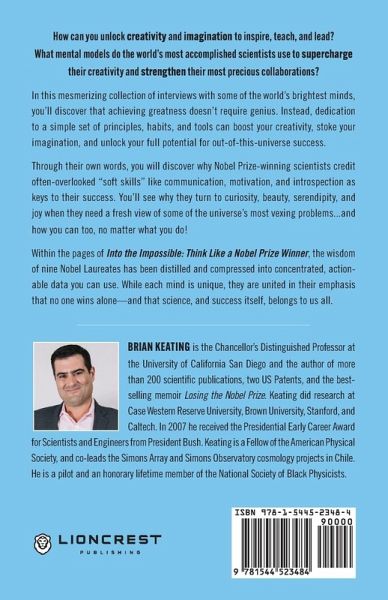 How can you unlock creativity and imagination to inspire, teach, and lead? What mental models do the world's most accomplished scientists use to supercharge their creativity and strengthen their most precious collaborations? In this mesmerizing collection of interviews with some of the world's brightest minds, you'll discover that achieving greatness doesn't require genius. Instead, dedication to a simple set of principles, habits, and tools can boost your creativity, stoke your imagination, and unlock your full potential for out-of-this-universe success. Through their own words, you will discover why Nobel Prize-winning scientists credit often-overlooked "soft skills" like communication, motivation, and introspection as keys to their success. You'll see why they turn to curiosity, beauty, serendipity, and joy when they need a fresh view of some of the universe's most vexing problems...and how you can too, no matter what you do! Within the pages of Into the Impossible: Think Like a Nobel Prize Winner, the wisdom of nine Nobel Laureates has been distilled and compressed into concentrated, actionable data you can use. While each mind is unique, they are united in their emphasis that no one wins alone-and that science, and success itself, belongs to us all.