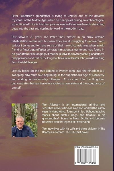 Peter Robertson's grandfather is trying to unravel one of the greatest mysteries of the Middle Ages when he disappears during an archaeological expedition in Ethiopia. His disappearance sets off a series of events stretching deep into the past and rippling forward to the modern day. Fast forward 20 years and Peter finds himself in an army veteran rehabilitation centre with his team. They are all struggling to recover from serious injuries and to make sense of their new circumstances when an old friend of Peter's grandfather contacts him about a mysterious map found in his grandfather's belongings. It may help solve the mystery of his grandfather's disappearance and that of the long-lost treasure of Prester John, a mythical King from the Middle Ages. Loosely based on the true legend of Prester John, Into the Kingdom is a sweeping adventure tale beginning in the superstitious Age of Discovery and ending in modern-day Ethiopia. At its core, Into the Kingdom, demonstrates that real heroism is rooted in humanity and the acceptance of oneself.