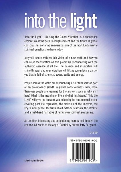 'Into the Light' - Raising the Global Vibration is a channelled exploration of the path to enlightenment and the future of global consciousness offering answers to some of the most fundamental spiritual questions we have today. Jerry will share with you his vision of a new earth and how we can raise the vibration on this planet by re-connecting with the authentic essence of all life. The passion and inspiration will shine through and your vibration will lift as you unlock a part of you that is full of strength, power, purity and energy. People across the world are experiencing a spiritual shift as part of an evolutionary growth in global consciousness. Now, more than ever people are yearning for the answers such as why am I here? What is the meaning of life and what lies beyond? 'Into the Light' will give the answers you're looking for and so much more; covering past life regression, the make-up of the universe, the key to inner peace, the truth about extra-terrestrials, the afterlife and a first-hand narrative of Jerry's own spiritual awakening. An exciting, interesting and enlightening journey told through the channelled words of the Angel-Gabriel by author Jerry Sargeant.