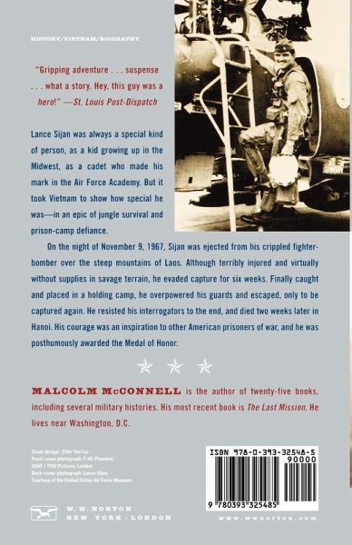 On the night of November 9, 1967, Sijan was ejected from his crippled fighter-bomber over the steep mountains of Laos. Although critically injured and virtually without supplies, he evaded capture in savage terrain for six weeks. Finally caught and placed in a holding camp, he overpowered his guards and escaped, only to be captured again. He resisted his interrogators to the end, and he died two weeks later in Hanoi. His courage was an inspiration to other American prisoners of war, and he was posthumously awarded the Medal of Honor.