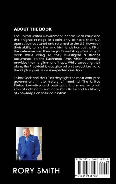 The United States Government locates Rock Razie and the Knights Protego in Spain only to have their CIA operatives, captured and returned to the U.S. However, their ability to find him and his friends has put the KP on the defensive and they begin formulating plans to fight back. While doing so, they investigate a strange occurrence on the Euphrates River, which eventually provides them a glimmer of hope. While executing their plans, the President is slaughtered on the east lawn and the KP plan goes in an unexpected direction. Follow Rock and the KP as they fight the most corrupted government in the history of mankind. The United States Executive and Legislative branches, who will stop at nothing to eliminate Rock Razie and his library of knowledge on their corruption.