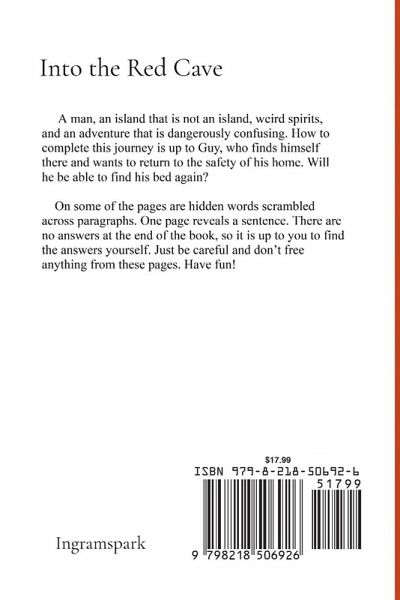 A man, an island that is not an island, weird spirits, and an adventure that is dangerously confusing. How to complete this journey is up to Guy, who finds himself there and wants to return to the safety of his home. Will he do it? Plus, within some pages are hidden words scrambled across paragraphs. One page reveals a sentence. There are no answers at the end of the book, so it is up to you to find the answers yourself. Just be careful and don't free anything from these pages. Have fun!