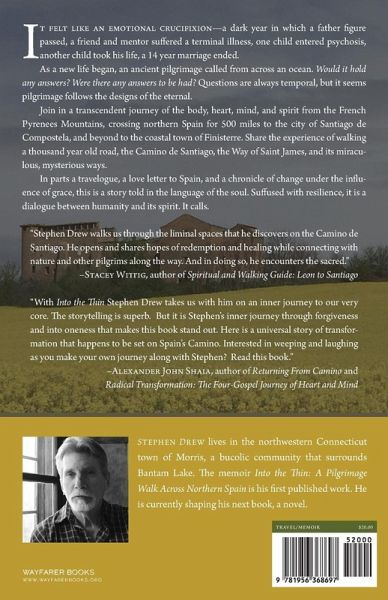 It felt like an emotional crucifixion-a dark year in which a father figure passed, a friend and mentor suffered a terminal illness, one child entered psychosis, another child took his life, a 14-year marriage ended.As a new life began, an ancient pilgrimage called from across an ocean. Would it hold any answers? Were there any answers to be had? Questions are always temporal, but it seems pilgrimage follows the designs of the eternal.Join in a transcendent journey of the body, heart, mind, and spirit from the French Pyrenees Mountains, crossing northern Spain for 500 miles to the city of Santiago de Compostela, and beyond to the coastal town of Finisterre. Share the experience of walking a thousand-year-old road, the Camino de Santiago, the Way of Saint James, and its miraculous, mysterious ways.In parts a travelogue, a love letter to Spain, and a chronicle of change under the influence of grace, this is a story told in the language of the soul. Suffused with resilience, it is a dialogue between humanity and its spirit. It calls.