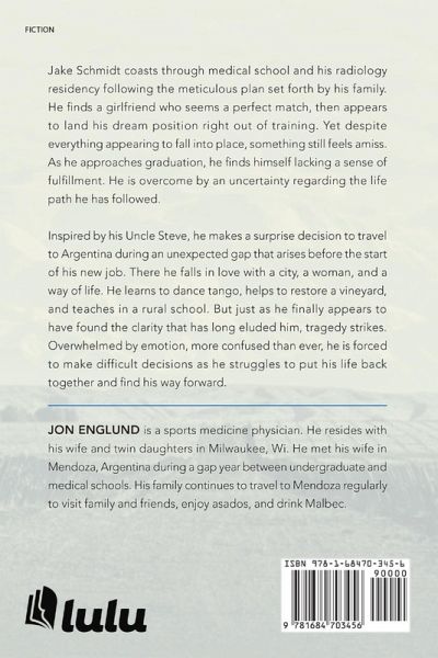 Jake Schmidt coasts through medical school and his radiology residency following the meticulous plan set forth by his family. He finds a girlfriend who seems a perfect match, then appears to land his dream position right out of training. Yet despite everything appearing to fall into place, something still feels amiss. As he approaches graduation, he finds himself lacking a sense of fulfillment. He is overcome by an uncertainty regarding the life path he has followed. Inspired by his Uncle Steve, he makes a surprise decision to travel to Argentina during an unexpected gap that arises before the start of his new job. There he falls in love with a city, a woman, and a way of life. He learns to dance tango, helps to restore a vineyard, and teaches in a rural school. But just as he finally appears to have found the clarity that has long eluded him, tragedy strikes.