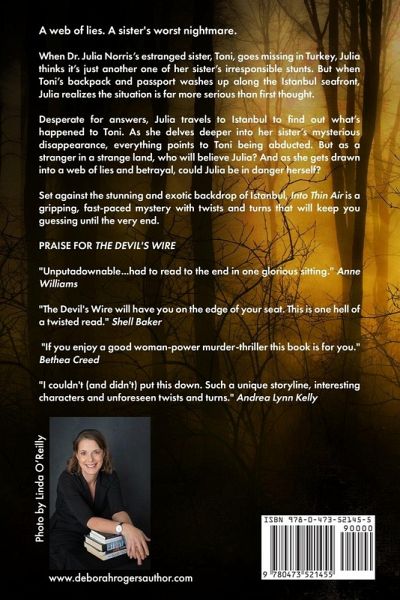 A web of lies. A sister's worst nightmare...When Dr. Julia Norris's estranged sister, Toni, goes missing in Turkey, Julia thinks it's just another one of her sister's irresponsible stunts. But when Toni's backpack and passport wash up along the Istanbul seafront, Julia realizes the situation is far more serious than first thought.Desperate for answers, Julia travels to Istanbul to find out what's happened to Toni. As she delves deeper into her sister's mysterious disappearance, everything points to Toni being abducted. But as a stranger in a strange land, who will believe Julia? And as she gets drawn into a web of lies and betrayal, could Julia be in danger herself?Set against the stunning backdrop of Istanbul, Into Thin Air is a gripping, fast-paced mystery with twists and turns that will keep you guessing until the very end.