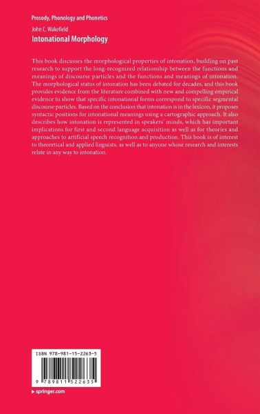 This book discusses the morphological properties of intonation, building on past research to support the long-recognized relationship between the functions and meanings of discourse particles and the functions and meanings of intonation. The morphological status of intonation has been debated for decades, and this book provides evidence from the literature combined with new and compelling empirical evidence to show that specific intonational forms correspond to specific segmental discourse particles. Based on the conclusion that intonation is in the lexicon, it proposes syntactic positions for intonational meanings using a cartographic approach. It also describes how intonation is represented in speakers' minds, which has important implications for first and second language acquisition as well as for theories and approaches to artificial speech recognition and production. This book is of interest to theoretical and applied linguists, as well as to anyone whose research and interests relate in any way to intonation.