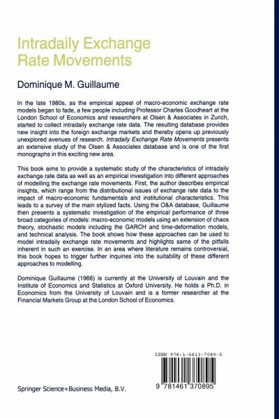 This book aims to provide a systematic study of the characteristics of intra-daily exchange rate data as well as an empirical investigation into different approaches of modelling the exchange rate movements. First, the author describes empirical insights, which range from the distributional issues of exchange rate data to the impact of macroeconomic fundamentals and institutional characteristics. This leads to a survey of the main stylized facts. Using the O&A database, Guillaume then presents a systematic investigation of the empirical performance of three broad categories of models: macro-economic models using an extension of chaos theory, stochastic models including the GARCH and time-deformation models, and technical analysis. The book shows how these approaches can be used to model intra-daily exchange rate movements and highlights some of the pitfalls inherent in such an exercise. In an area where literature remains controversial, this book hopes to trigger further inquiries into the suitability of these different approaches to modelling.