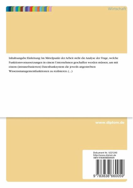 Im Mittelpunkt der Arbeit steht die Analyse der Frage, welche Funktionsvoraussetzungen in einem Unternehmen geschaffen werden müssen, um mit einem (intranetbasierten) Datenbanksystem die jeweils angestrebten Wissensmanagementfunktionen zu realisieren. Während viele Publikationen zum Wissensmanagement lediglich die allgemeine, strategische Notwendigkeit des Wissensmanagements unter den heutigen, gewandelten Wettbewerbsbedingungen proklamieren, werden in dieser Arbeit darüber hinaus konkrete Rahmenbedingungen und Gestaltungsempfehlungen ausgearbeitet, die für eine erfolgreiche Datenbankimplementation und -anwendung notwendig sind. Der Autor weist nach, dass eine ganzheitliche Betrachtung von Datenbanken erforderlich ist, wenn sie nutzbringend für ein Unternehmen eingesetzt werden sollen: Neben der technischen Dimension und der Gestaltung der Datenbank an sich, sind vor allen Dingen kulturelle, personelle und strukturelle Maßnahmen zu berücksichtigen. Die Analyse dieser multivariablen Zusammenhänge vor dem Hintergrund potentieller Barrieren und Problemfelder sowie die Ableitung von Überwindungsmöglichkeiten, erfolgen unter dem Leitziel, Rahmenbedingungen und deren Umsetzungsmöglichkeiten zu präsentieren, so dass eine nutzbringende Anwendung von Datenbanksystemen in Unternehmen im Sinne der unterschiedlichen Wissensmanagementfunktionen ermöglicht wird.