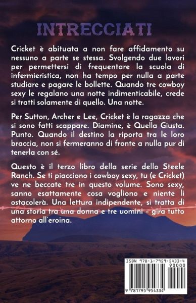 Cricket è abituata a non fare affidamento su nessuno a parte se stessa. Svolgendo due lavori per permettersi di frequentare la scuola di infermieristica, non ha tempo per nulla a parte studiare e pagare le bollette. Quando tre cowboy sexy le regalano una notte indimenticabile, crede si tratti solamente di quello. Una notte. Per Sutton, Archer e Lee, Cricket è la ragazza che si sono fatti scappare. Diamine, è Quella Giusta. Punto. Quando il destino la riporta tra le loro braccia, non si fermeranno di fronte a nulla pur di tenerla con sé. Questo è il terzo libro della serie dello Steele Ranch. Se ti piacciono i cowboy sexy, tu (e Cricket) ve ne beccate tre in questo volume. Sono sexy, sanno esattamente cosa vogliono e niente li ostacolerà. Una lettura indipendente, si tratta di una storia tra una donna e tre uomini – gira tutto attorno all’eroina.