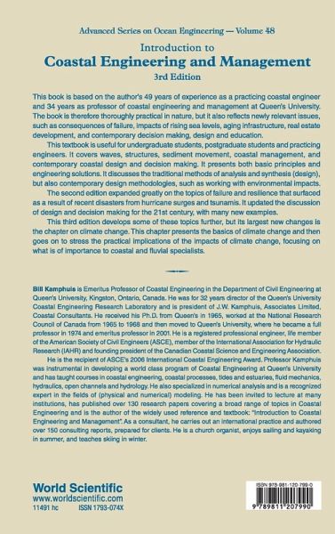 This book is based on the author's 49 years of experience as a practicing coastal engineer and 34 years as professor of coastal engineering and management at Queen's University. The book is therefore thoroughly practical in nature, but it also reflects newly relevant issues, such as consequences of failure, impacts of rising sea levels, aging infrastructure, real estate development, and contemporary decision making, design and education. This textbook is useful for undergraduate students, postgraduate students and practicing engineers. It covers waves, structures, sediment movement, coastal management, and contemporary coastal design and decision making. It presents both basic principles and engineering solutions. It discusses the traditional methods of analysis and synthesis (design), but also contemporary design methodologies, such as working with environmental impacts. The second edition expanded greatly on the topics of failure and resilience that surfaced as a result of recent disasters from hurricane surges and tsunamis. It updated the discussion of design and decision making for the 21st century, with many new examples. This third edition develops some of these topics further, but its largest new changes is the chapter on climate change. This chapter presents the basics of climate change and then goes on to stress the practical implications of the impacts of climate change, focusing on what is of importance to coastal and fluvial specialists.