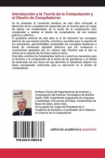 Se ha diseñado el contenido temático de este libro enfocado al desarrollo de las competencias requeridas por el alumno para ser capaz de aplicar los fundamentos de la teoría de la computación para comprender y realizar el diseño de compiladores, de una manera práctica y efectiva.El propósito esencial de esta obra es el de transmitir los conceptos teóricos de una manera sencilla, concreta y accesible para la mayoría de los estudiantes, permitiéndoles comprender los conceptos abstractos a través de numerosos ejemplos prácticos que los conduzcan a conclusiones generales por un camino más intuitivo que el que se utiliza en la mayoría de los libros sobre el tema.Esta obra contiene los fundamentos teóricos y prácticos necesarios para el dominio y la comprensión de la teoría de las gramáticas y el diseño de autómatas de una forma tal que permiten al estudiante adquirir las bases conceptuales suficientes para su aplicación en el diseño de compiladores.