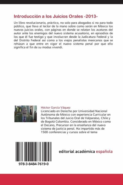 Un libro revolucionario, práctico, no solo para abogados si no para todo público, que lleva al lector de la mano sobre como serán en México los nuevos juicios orales, con páginas en donde se relatan los avatares del autor ante los enemigos del nuevo sistema acusatorio, en episodios de los que él fue testigo y que involucran desde la Judicatura Federal y la del Distrito Federal así como a los viejos penalistas mexicanos que se rehúsan a que entre en vigor el nuevo sistema penal por que ello significa el fin de su modus vivendi.
