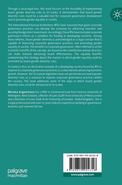Sri Lanka is thus an illustrative example of a developing country forced by IFIs to improve its corporate governance practices as a step towards advancing economic growth. However, the Sri Lankan legislators have not yet introduced board gender diversity rules as a measure to improve corporate governance practices within the country. This book addresses some of the ways in which board gender diversity rules could be introduced to Sri Lanka.