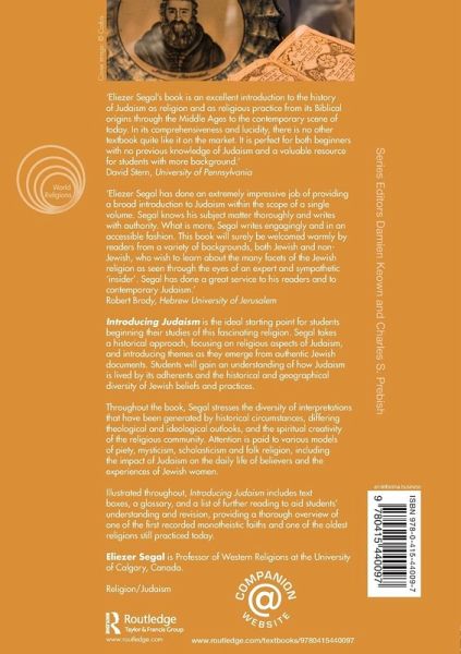 'Eliezer Segal's book is an excellent introduction to the history of Judaism as religion and as religious practice from its Biblical origins through the Middle Ages to the contemporary scene of today. In its comprehensiveness and lucidity, there is no other textbook quite like it on the market. It is perfect for both beginners with no previous knowledge of Judaism and a valuable resource for students with more background.' - David Stern, University of Pennsylvania, USA