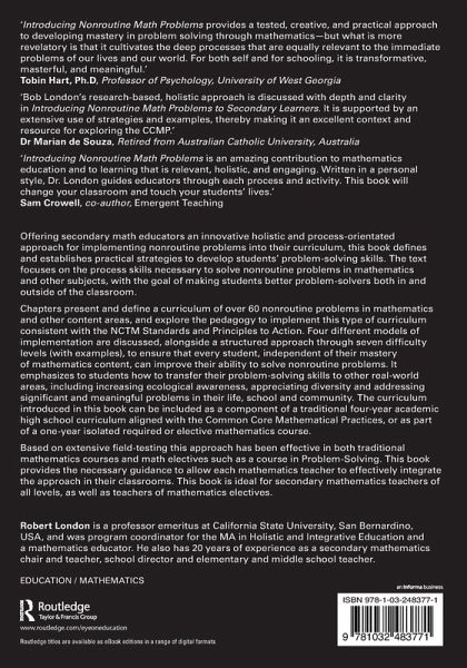 'Bob London's research-based, holistic approach is discussed with depth and clarity in Introducing Nonroutine Math Problems to Secondary Learners. It is supported by an extensive use of strategies and examples, thereby making it an excellent context and resource for exploring the CCMP.'