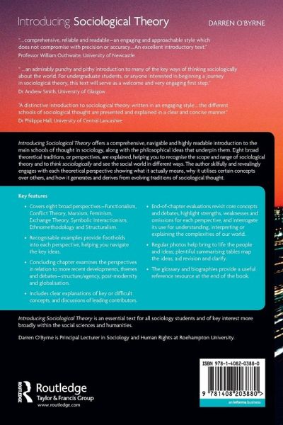 Introducing Sociological Theory offers a comprehensive, navigable and highly readable introduction to the main schools of thought in sociology, along with the philosophical ideas that underpin them. 8 broad theoretical traditions, or perspectives, are explained helping you to recognize the scope and range of sociological theory and to think sociologically and see the social world in different ways. The author skilfully and revealingly engages with each theoretical perspective showing what it actually means, why it utilises certain concepts over others, and how it generates and derives from evolving traditions of sociological thought. Introducing Sociological Theory is an essential text for all sociology students and of key interest more broadly within the social sciences and humanities.