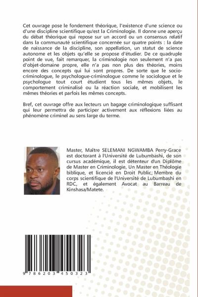 Cet ouvrage pose le fondement théorique, l'existence d'une science ou d'une discipline scientifique qu'est la Criminologie. Il donne une aperçu du débat théorique qui repose sur un accord ou un consensus relatif dans la communauté scientifique concernée sur quatre points : la date de naissance de la discipline, son appellation, un statut de science autonome et les objets qu'elle se propose d'étudier. De ce quadruple point de vue, fait remarquer, la criminologie non seulement n'a pas d'objet-domaine propre, elle n'a pas non plus des théories, moins encore des concepts qui lui sont propres. De sorte que le socio-criminologue, le psychologue-criminologue comme le sociologue et le psychologue tout court étudient tous les mêmes objets, le comportement criminalisé ou la réaction sociale, et mobilisent les mêmes théories et parfois les mêmes concepts. Bref, cet ouvrage offre aux lecteurs un bagage criminologique suffisant qui leur permettra de participer activement aux réflexions liées au phénomène criminel au sens large du terme.