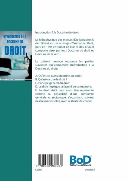 Le présent ouvrage regroupe les parties suivantes qui composent l'Introduction à la Doctrine du droit: