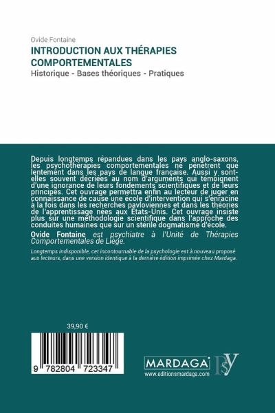 Depuis longtemps répandues dans les pays anglo-saxons, les psychothérapies comportementales ne pénètrent que lentement dans les pays de langue française. Aussi y sont-elles souvent décriées au nom d'arguments qui témoignent d'une ignorance de leurs fondements scientifiques et de leurs principes. Cet ouvrage permettra enfin au lecteur de juger en connaissance de cause une école d'intervention qui s'enracine à la fois dans les recherches pavloviennes et dans les théories de l'apprentissage nées aux États-Unis. Cet ouvrage insiste plus sur une méthodologie scientifique dans l'approche des conduites humaines que sur un stérile dogmatisme d'école. Ovide Fontaine est psychiatre à l¿Unité de Thérapies Comportementales de Liège.