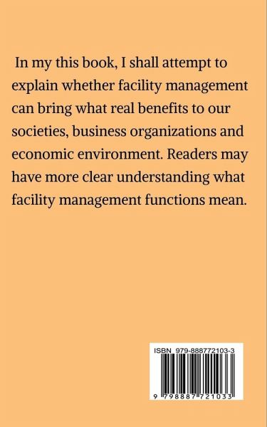 Whether do any organizations need facility management department? What function of benefits will bring when the organization sets up one facility management department? If the organization lacked one facility management department, what the disadvantage it will bring to influence the organization's operation? Does it has relationship between raising efficiency or improving performance and facility management department? I shall indicate some evidences and causations to explain what will be occured when the organizatin owns one facility management department or it lacks one facility management department in its organization. Any readers can make judgement whether in what suitations , the organization needs to set up one facility management department in order to bring advantages or waste essential human resource or raise service cost from the facility management department. In my this book, I shall attempt to explain whether facility management can bring what real benefits to our societies, business organizations and economic environment. Readers may have more clear understanding what facility management functions mean.