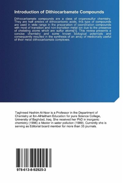 Dithiocarbamate compounds are a class of organosulfur chemistry. They are half amides of dithiocarbonic acids, this type of compounds are used in wide range in the preparation of coordination compounds with most of transition and non-transition metal ion due to the presence of chelating atoms which are sulfur atoms[1]. This review presents a concise chemistry and some known biological potentials and consequently resulted in the synthesis of an array of medicinally useful of their metal dithiocarbamate complexes.