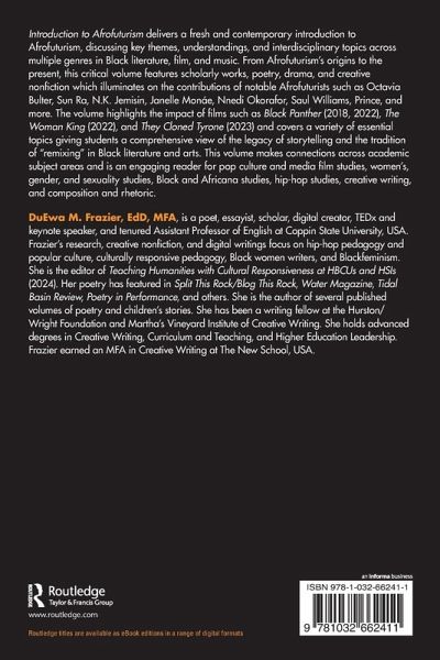 Introduction to Afrofuturism delivers a fresh and contemporary introduction to Afrofuturism, discussing key themes, understandings, and interdisciplinary topics across multiple genres in Black literature, film, and music. From Afrofuturism's origins to the present, this critical volume features scholarly works, poetry, drama, and creative nonfiction which illuminates on the contributions of notable Afrofuturists such as Octavia Bulter, Sun Ra, N.K. Jemisin, Janelle Monáe, Nnedi Okorafor, Saul Williams, Prince, and more. The volume highlights the impact of films such as Black Panther (2018, 2022), The Woman King (2022), and They Cloned Tyrone (2023) and covers a variety of essential topics giving students a comprehensive view of the legacy of storytelling and the tradition of "remixing" in Black literature and arts. This volume makes connections across academic subject areas and is an engaging reader for pop culture and media film studies, women's, gender, and sexuality studies, Black and Africana studies, hip-hop studies, creative writing, and composition and rhetoric.