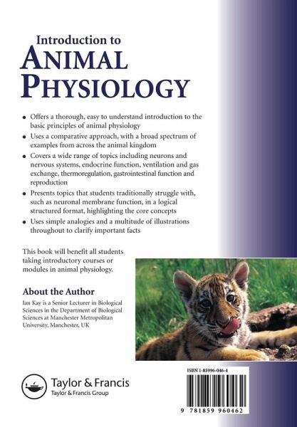 Introduction to Animal Physiology provides students with a thorough, easy-to-understand introduction to the principles of animal physiology. It uses a comparative approach, with a broad spectrum of examples chosen to illustrate physiological processes from across the animal kingdom. The book covers a wide range of topics, including neurons and nervous systems, endocrine function, ventilation and gas exchange, thermoregulation, gastrointestinal function and reproduction. It also present topics that students typically struggle with, including neuronal membrane function, in a logical, structured format, highlighting to core concepts. Simple analogies are used to clarify important facts.