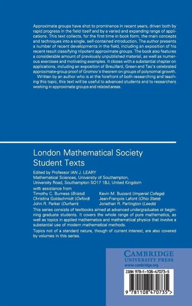 Matthew C. H. Tointon is the Stokes Research Fellow at Pembroke College, Cambridge, affiliated to the Department of Pure Mathematics and Mathematical Statistics at the University of Cambridge. He has held postdoctoral positions at Homerton College, Cambridge, at the Université de Paris-Sud and at the Université de Neuchâtel, Switzerland. Tointon is the author of numerous research papers on approximate groups and he proved the strongest known results describing the structure of nilpotent and residually nilpotent approximate groups.