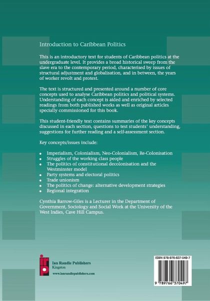 An introductory text for students of Caribbean Politics. It provides a broad historical sweep from the slave era to the contemporary period, characterised by issues of structural adjustments and globalisation, and in between, the years of worker revolt and protest. The text is structured and presented around a number of core concepts used to analyse Caribbean politics and political systems.