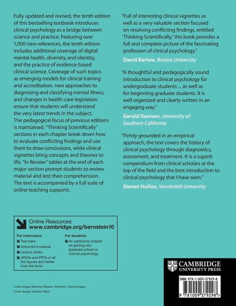 Thoroughly revised, the tenth edition of this bestselling textbook introduces students to clinical psychology as a bridge between science and practice. Ideal for advanced undergraduate and graduate students, this pedagogically rich textbook teaches its readers to think critically, consolidate their learning, and stay up to date in the field.