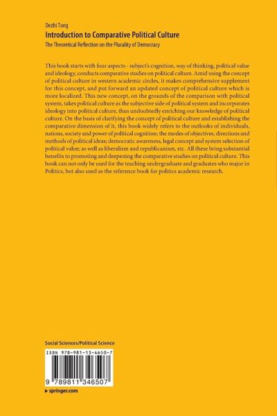 This book starts with four aspects - subject's cognition, way of thinking, political value and ideology, conducts comparative studies on political culture. Amid using the concept of political culture in western academic circles, it makes comprehensive supplement for this concept, and put forward an updated concept of political culture which is more localized. This new concept, on the grounds of the comparison with political system, takes political culture as the subjective side of political system and incorporates ideology into political culture, thus undoubtedly enriching our knowledge of…mehr