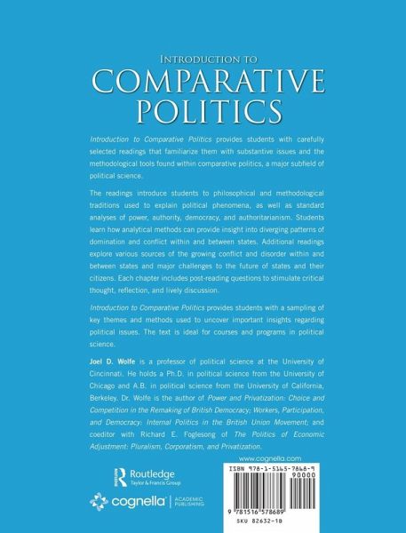 Introduction to Comparative Politics provides students with carefully selected readings that familiarize them with substantive issues and the methodological tools found within comparative politics, a major subfield of political science. The readings introduce students to philosophical and methodological traditions used to explain political phenomena, as well as standard analyses of power, authority, democracy, and authoritarianism. Students learn how analytical methods can provide insight into diverging patterns of domination and conflict within and between states. Additional readings explore various sources of the growing conflict and disorder within and between states and major challenges to the future of states and their citizens. Each chapter includes post-reading questions to stimulate critical thought, reflection, and lively discussion. Introduction to Comparative Politics provides students with a sampling of key themes and methods used to uncover important insights regarding political issues. The text is ideal for courses and programs in political science.