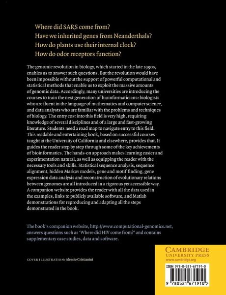 Are we related to Neanderthals? Where did SARS come from? Which part of our genome is evolving the fastest? How does one detect genes borrowed from other organisms? These are some of the questions that can be answered by statistical and computational analysis of genetic data, and are the vehicle for this self-contained and entertaining introduction to computational genomics, based on a successful course taught at UC Davis. The case-studies approach with Matlab demos provides a painless and enjoyable way to learn how to analyze genomic data first-hand.