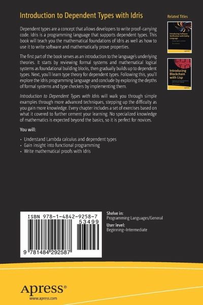 Dependent types are a concept that allows developers to write proof-carrying code. Idris is a programming language that supports dependent types. This book will teach you the mathematical foundations of Idris as well as how to use it to write software and mathematically prove properties.
