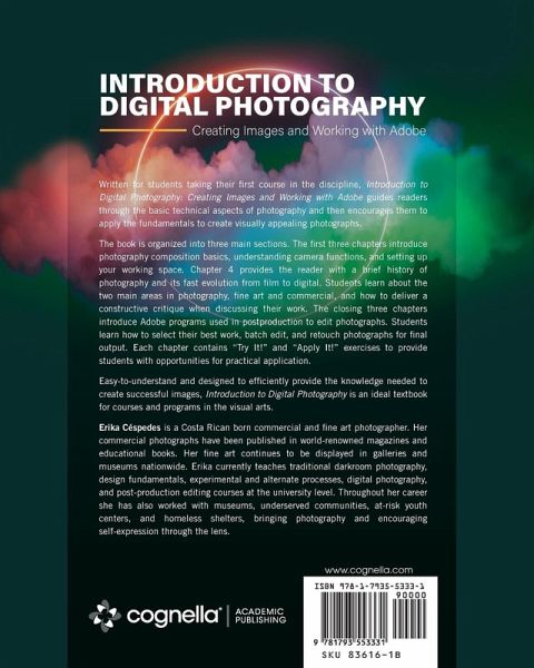 Written for students taking their first course in the discipline, Introduction to Digital Photography: Creating Images and Working with Adobe guides readers through the basic technical aspects of photography and then encourages them to apply the fundamentals to create visually appealing photographs. The book is organized into three main sections. The first three chapters introduce photography composition basics, understanding camera functions, and setting up your working space. Chapter 4 provides the reader with a brief history of photography and its fast evolution from film to digital. Students learn about the two main areas in photography, fine art and commercial, and how to deliver a constructive critique when discussing their work. The closing three chapters introduce Adobe programs used in postproduction to edit photographs. Students learn how to select their best work, batch edit, and retouch photographs for final output. Each chapter contains "Try It!" and "Apply It!" exercises to provide students with opportunities for practical application. Easy-to-understand and designed to efficiently provide the knowledge needed to create successful images, Introduction to Digital Photography is an ideal textbook for courses and programs in the visual arts.