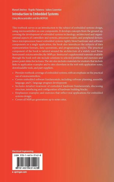 The practical component of the book is tailored around the architecture of a widely used Texas Instrument's microcontroller, the MSP430 and a companion web site offers for download an experimenter's kit and lab manual, along with Powerpoint slides and solutions for instructors.
