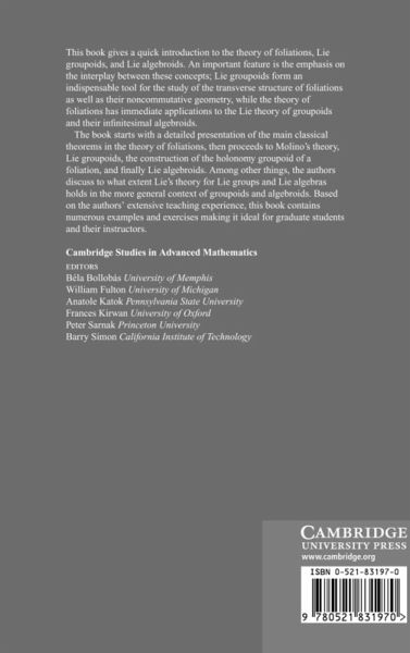 This book gives a quick introduction to the theory of foliations and Lie groupoids. It is based on the authors' extensive teaching experience and contains numerous examples and exercises making it ideal either for independent study or as the basis of a graduate course.