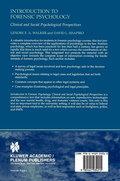 Section I What is Forensic Psychology?.- 1: Introduction to Forensic Psychology.- 2: Models of Legal Systems.- 3: Admissibility of Expert Testimony.- Section II Understanding the Criminal Mind.- 4: Criminal Responsibility.- 5: Competency to Stand Trial.- 6: Self-Defense and Syndrome Testimony.- 7: Clinical Assessment in Forensic Settings.- 8: Psychological Interventions in Forensic Settings.- Section III Can Psychologists Measure Pain and Suffering?.- 9: Civil Law and Personal Injury.- 10: Involuntary Commitment and Other Civil Liberties.- Section IV Family Law and Fitness to Parent.- 11: Marriage and Divorce.- 12: Access to, and Protection of, Children.- 13: Protection of Abused Children, the Mentally and Physically Challenged, and the Elderly.- 14: Reproductive Rights and the Law.- Section V Juvenile Justice.- 15: Delinquency.- 16: School Violence.- 17: Legal Rights of Children.- Section VI Legal Consultation Based on Social Psychology.- 18: Discrimination and Sexual Harassment.- 19: Eyewitness Identification.- 20: Jury Selection and Trial Consultation.- Section VII Practical Tips for Forensic Psychology Experts.- 21: Forensic Experts and Attorneys: Communication Process.- 22: Risk Management in Forensic Psychology Practice.- Case Citations.- Selected Readings.