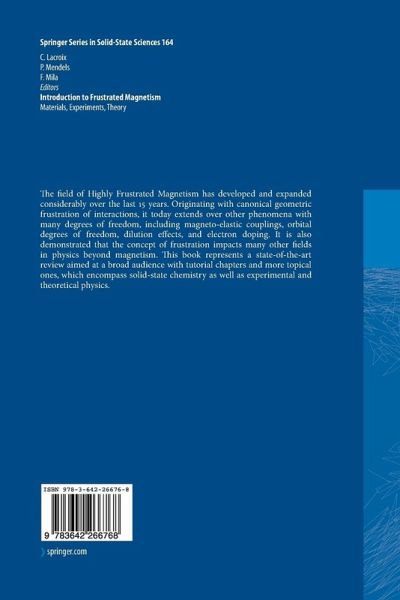 First Part: Basic concepts in frustrated magnetism.- Thermal and Quantum Fluctuations in Frustrated Magnets.- Quantum Spin Liquids.- Second Part: Probing frustrated magnets.- Thermodynamic Measurements.- Neutron scattering.- Resonance experiments (ESR, NMR, µ-SR).- Light experiments.- Third Part: Frustrated systems.- Synthesis and crystal growth of frustrated magnets.- Spinels.- Pyrochlores.- Kagome.- Fourth part: Specific effects in frustrated magnets.- Magnetization plateaux.- Lattice instabilities.- Spin ice.- Fifth part: Advanced Theorical Methods in Frustrated Magnetism.- Large N approaches and Schwinger bosons.- Variational Monte-Carlo and Projected Wavefunctions.- Quantum Dimer Models.- Numerical Simulations of Frustrated Quantum Magnets.- Exactly Soluble Models of Frustrated Quantum Magnetism.- Strong-coupling Expansions.- Sixth part: Related topics.- Biquadratic interactions and ring exchange.- Mobile Holes in Frustrated Quantum Magnets.- Metallic and Superconducting Doped Frustrated Magnets.- Orbital Degeneracy.