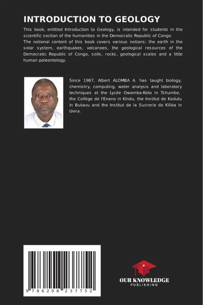 This book, entitled Introduction to Geology, is intended for students in the scientific section of the humanities in the Democratic Republic of Congo.The notional content of this book covers various notions: the earth in the solar system, earthquakes, volcanoes, the geological resources of the Democratic Republic of Congo, soils, rocks, geological scales and a little human paleontology.
