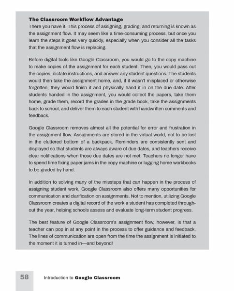 Introduction to Google Classroom will help teachers of all grade levels master the basics of communication and education using the Google Classroom file sharing service. Learn how to connect with students, control access to lessons, distribute assignments, and update your class calendar. Google Classroom newbie? No worries! Experienced educator and author Annie Brock takes readers step-by-step through the most common Google Classroom features and terminology. Packed with tips, tricks, troubleshooting, helpful screenshots, and activity ideas to keep students of all ages engaged, this book is indispensable as the future of teaching continues to evolve.