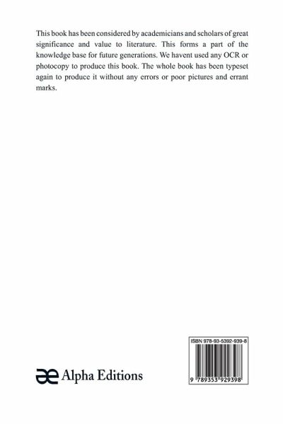 This book has been considered by academicians and scholars of great significance and value to literature. This forms a part of the knowledge base for future generations. So that the book is never forgotten we have represented this book in a print format as the same form as it was originally first published. Hence any marks or annotations seen are left intentionally to preserve its true nature.