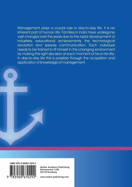 Management plays a crucial role in day-to-day life. It is an inherent part of human life. Families in India have undergone vast changes over the years due to the rapid development of industries, educational achievements, the technological revolution and speedy communication. Each individual needs to be trained to fit himself in this changing environment by making the right decision at each moment of his or her life. In day-to-day life this is possible through the acquisition and application of knowledge of management.