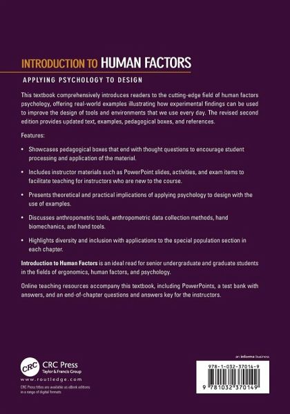 This textbook introduces readers to the innovative field of human factors psychology, offering real-world examples illustrating how experimental findings are used to improve the design of tools and environments used daily. This edition provides updated text, examples, pedagogical boxes, references, and an expanded instructorâ s manual.