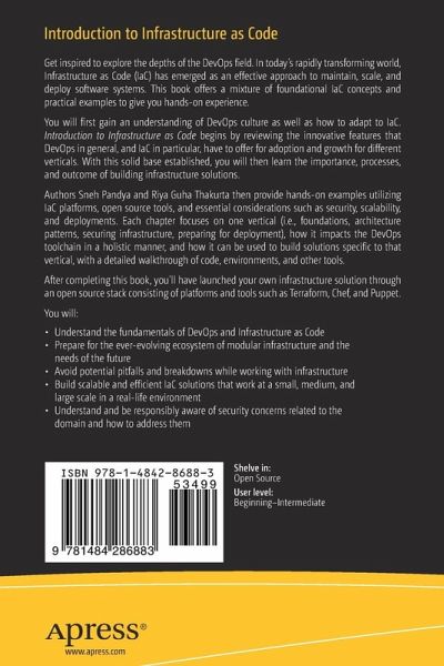 Get inspired to explore the depths of the DevOps field. In today's rapidly transforming world, Infrastructure as Code (IaC) has emerged as an effective approach to maintain, scale, and deploy software systems. This book offers a mixture of foundational IaC concepts and practical examples to give you hands-on experience.