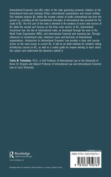 International Economic Law (IEL) refers to the rules governing economic relations at the international level and involving States, international organizations and private entities. This textbook explores IEL within the broader context of public international law from the ground up, providing all the foundational principles of international law essential for the study of IEL. The first part of the book is devoted to the analysis of actors and sources of IEL while the second part focuses on the three main sectors of IEL: international investment law, the law of international trade, as developed through the work of the World Trade Organization (WTO), and international financial and monetary law. Through references to conventional rules, landmark cases and decisions of international organizations, Introduction to International Economic Law provides a clear and concise primer on the main issues in current IEL. It will be an ideal textbook for students taking introductory courses in IEL, as well as a useful guide for anyone wishing to learn about the subject and understand the dynamics behind it.